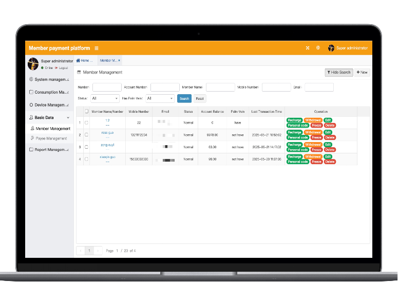 The virtual balance of members can be managed uniformly, and withdrawal and recharge are supported