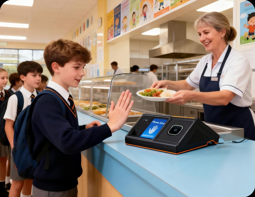 适配校园、政企单位等食堂场景,无需带手机,通过掌静脉识别快速完成支付