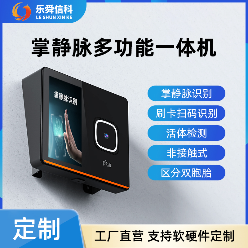 | 刷掌模组(支持扫码) | 刷掌距离:6-15cm 识别时间:本地识别600ms,云端识别1.2S(不包括业务时间) 刷码距离:3~12cm(支持付款码、退款码) 刷掌角度:俯仰角≤30°,翻滚角≤30°,水平旋转角≤180° 使用环境:室内、半室外0~50000Lux 识别率:>98% |