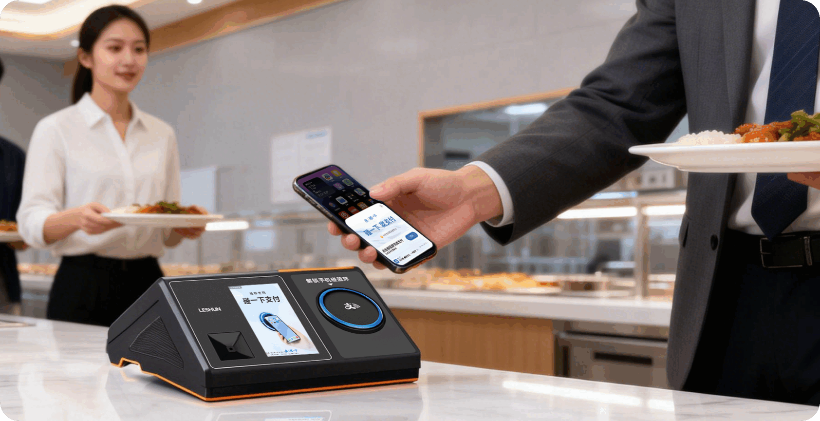 快速结算,减少排队拥堵,支持手机碰一下支付、扫码支付、刷卡支付多种快速支付方式;提升员工就餐体验,增强企业归属感
